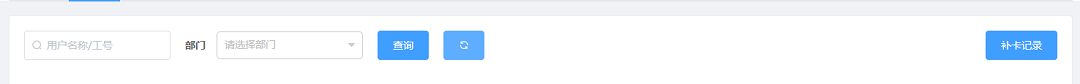 ②這里可以根據(jù)用戶名稱/工號、選擇部門、補(bǔ)卡日期等信息查詢補(bǔ)卡記錄;點(diǎn)擊刷新按鈕,可以刷新輸入內(nèi)容。