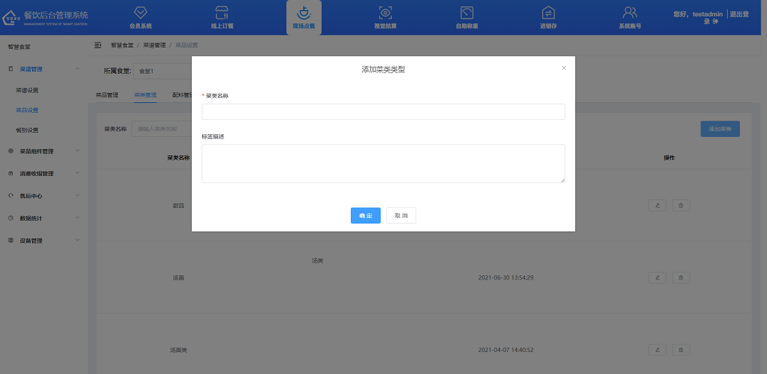 ②輸入菜類名稱、備注,點擊“確定”按鈕,即添加成功。