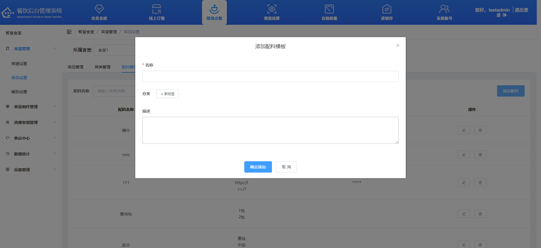 ②輸入配料名稱、分類、描述,點擊“確定”按鈕,即添加成功。