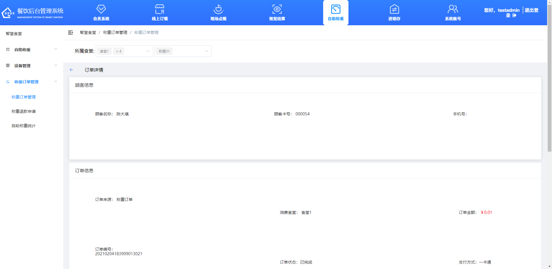 戈子科技智慧食堂管理系統(tǒng)-自助稱重訂單管理操作介紹