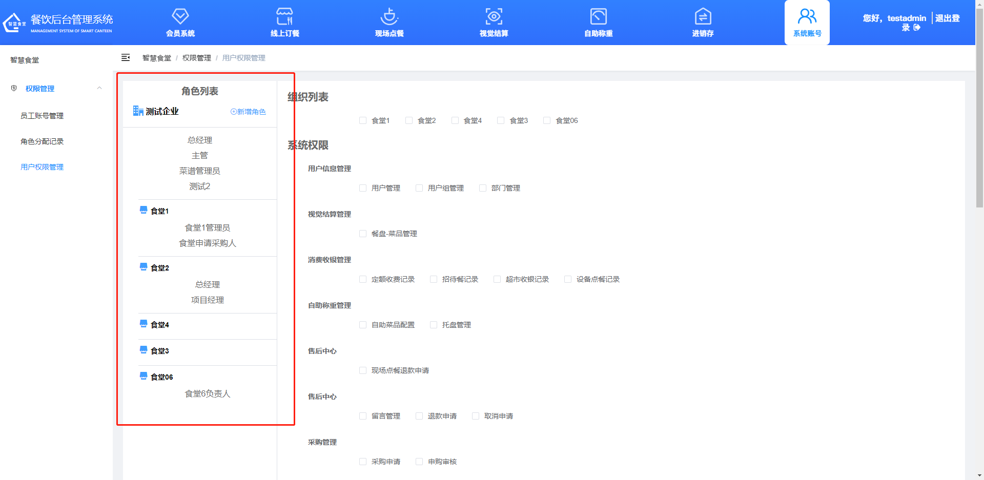 ①按需勾選“組織列表”中的食堂,擁有哪個食堂的權(quán)限則角色就可以查看和管理食堂相關(guān)模塊。